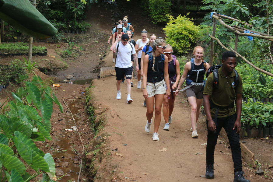 From Muller’s Lodge or Migambo Village, walk through the colorful forest to this local waterfall. Extend your tour by climbing Migambo peak (2400m high!).